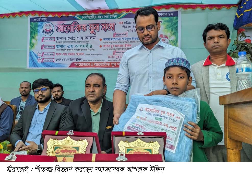 মামুন নজরুল : দিনব্যাপী নানা আয়োজনে মীরসরাই আবুতোরাব “আলোকিত যুব সংঘ” ১ম প্রতিষ্ঠা বার্ষিকী উদযাপিত হয়েছে।এ উপলক্ষে শনিবার (১৮ জানুয়ারি) সকাল থেকে আবুতোরাব ফাজিল মাদ্রাসার প্রাঙ্গণে আলোচনা সভা,শীতার্ত ও দুস্থ মানুষের মাঝে কম্বল বিতরণ, দরিদ্র ও মেধাবীদের মাঝে শিক্ষা সামগ্রী,১ হাজার মানুষকে ফ্রি চিকিৎসা সেবা প্রদান করে ৮ জন এমবিবিএস ডাক্তার মাধ্যমে এবং ১৩ জনকে গুনীজন সম্মাননা দেয়া হয়েছে।