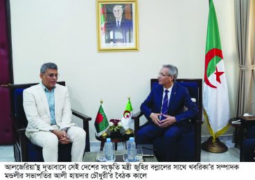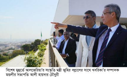 নিজস্ব প্রতিনিধি :: পাক্ষিক খবরিকা’র সম্পাদক মন্ডলীর সভাপতি বিশিষ্ট শিক্ষানুরাগী ও আন্তর্জাতিক পর্যায়ের শিক্ষা সংগঠক আলী হায়দার চৌধুরী সম্প্রতি আলজেরিয়া সফরকালে সেই দেশের সংস্কৃতি মন্ত্রী জুহির বল্লালের সাথে এক বৈঠক করেন। তিনি জানান ‘আলজেরিয়ান উক্ত সংস্কৃতি মন্ত্রী জনাব জুহির বল্লালোর মধ্যে একটি ফলপ্রসূ বৈঠক সম্প্রতি আলজেরিয়া দূতাবাসে অনুষ্ঠিত হয়েছে। এসময় সম্মানিত মন্ত্রী সাংস্কৃতিক ঐতিহ্যের বিনিময়ে জোর দিয়েছিলেন । সেখানকার মিঃ রাশেদ আহমেদ, চার্জ ডি’ফায়ারস এআই দ্বারা আয়োজিত আলজেরিয়া সফরকালে বিএবিএফের একজন ৫ সদস্যের প্রতিনিধি দল বিভিন্ন ব্যবসায়িক সম্প্রদায়ের সাথে দেখা করেছিল। আলজেরিয়ায় বাংলাদেশ দূতাবাসের এই ট্রিপটিকে সফলভাবে পরিণত করার জন্য তার কঠোর প্রচেষ্টার জন্য বাংলাদেশের আলজেরিয়ার রাষ্ট্রদূত মিঃ আবদেলৌহাব সাইদানির প্রতি আন্তরিক ধন্যবাদ ও কৃতজ্ঞতা জানান খবরিকার সম্পাদক মন্ডলীর সভাপতি আলী হায়দার চৌধুরী। উল্লেখ্য যে জনাব আলী হায়দার মীরসরাই উপজেলার সোনাপাহাড় গ্রামের কৃতি সন্তান। তিনি এলোহা বাংলাদেশ এর ব্যবস্থাপনা পরিচালক এর দায়িত্বরত।