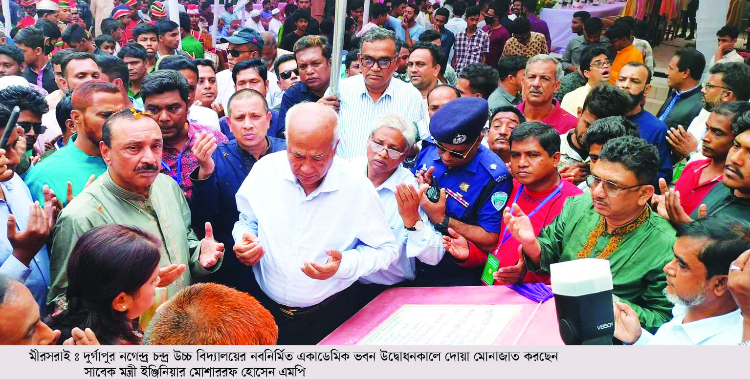 মীরসরাই উপজেলা চেয়ারম্যান আলহাজ¦ জসিম উদ্দিন এর সভপতিত্বে বৃহস্প্রতিবার ( ১৬ মার্চ) বিকেলে উপজেলার প্রাচীন বিদ্যাপিঠ দুর্গাপুর ন.চ. উচ্চ বিদ্যালয় মাঠে সাড়ে ৪ কোটি টাকা ব্যায়ে নতুন ভবন উদ্বোধনকালে এক সুধি সমাবেশ অনুষ্ঠিত হয়। নতুন একাডেমিক ভবনের ফলক উম্মোচন শেষে ইঞ্জিনিয়ার মোশাররফ হোসেন ও অতিথীবৃন্দ দোয়া মোনাজাতে অংশ নেন ।