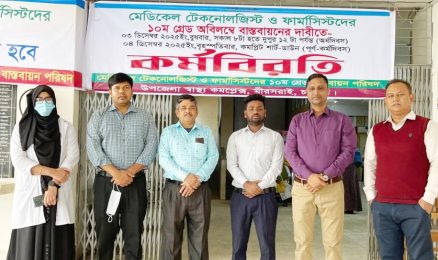 দীর্ঘ তিন দশকের বৈষম্য, অবহেলা, প্রশাসনিক উদাসীনতা ও প্রতিশ্রুতি ভঙ্গের বিরুদ্ধে একটি ন্যায্য অধিকার আদায়ে কেন্দ্রীয় কমিটির ঘোষিত কর্মসূচি অনুযায়ী আজ অর্ধদিবস কর্মবিরতি চলছে। পেশাজীবীরা বলেন- কর্মসূচী চলাকালীন চিকিৎসা নিতে আসা সাধারণ মানুষদের যে সাময়িক অসুবিধার মুখোমুখি হচ্ছে, তার জন্য আমরা আন্তরিকভাবে দুঃখ প্রকাশ করছি। কিন্তু আমরা এই আন্দোলনে অবমূল্যায়ন থামাতে, পেশাজীবীদের নায্য অধিকার নিশ্চিত করতে। স্বাস্থ্যখাত কেবল ডাক্তার-নার্সের ওপর দাঁড়ানো নয়; স্বাস্থ্যখাত একটি ত্রিমাত্রিক সুসংগঠিত টিম—ডাক্তার, নার্স, এবং মেডিকেল টেকনোলজিস্ট ও ফার্মাসিস্টরা মিলে এই স্বাস্থ্যসেবা টিকে থাকে, এগিয়ে যায়। পেশাজীবীদের দাবী- সমমানের যোগ্যতার সব ডিপ্লোমা পেশাজীবীরা বহু আগেই দশম গ্রেড পেয়েছেন। ডিপ্লোমা প্রকৌশলীরা ১৯৯৪ সালে, নার্সরা ২০১১ সালে,কৃষি ডিপ্লোমাধারীরা ২০১৮ সালে। কিন্তু একমাত্র মেডিকেল টেকনোলজিস্ট ও ফার্মাসিস্টরা আজও সেই অধিকার থেকে বঞ্চিত। কর্মসূচী চলাকালীন প্যাথলজি, রেডিওলজি, ডেন্টাল, ফার্মেসী ও ফিজিওথেরাপী সেবা মারাত্নকভাবে বিঘ্নিত হয়। লম্বা সারিতে রোগীরা এসব সেবা নেয়ার জন্য অপেক্ষমান ছিল। কর্মসূচির কারণে কিছু ল্যাবরেটরি ও ডায়াগনস্টিক সেবায় মারত্নক বিঘ্ন ঘটে।