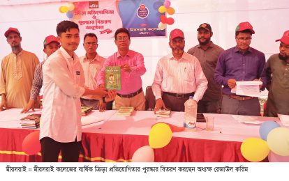 তাকিবুর রহমান :: মীরসরাই উপজেলা সদরস্থ ঐতিহ্যবাহী মীরসরাই কলেজের বার্ষিক ক্রিড়া ও সাংস্কৃতিক এবং পুরস্কার বিতরণী অনুষ্ঠান উৎসবমুখর ভাবে সম্পন্ন হয়েছে। সোমবার ( ২৪ ফেব্রুয়ারী) সকাল ৯টা থেকে কলেজ প্রাঙ্গণে বিভিন্ন ইভেন্টে খেলাধুলা ও সাংস্কৃতিক প্রতিযোগিতা শেষে বিকাল ৩টায় পুরস্কার বিতরণ অনুষ্ঠানে প্রধান অতিথি হিসেবে পুরস্কার বিতরণ করেন কলেজের অধ্যক্ষ রেজাউল করিম। উপাধ্যক্ষ নাছির উদ্দিন এর সভাপতিত্বে ও অধ্যাপক উত্তম কুমার চৌধুরীর সঞ্চালনায় উক্ত অনুষ্ঠানে আরো উপস্থিত ছিলেন বাংলা বিভাগের অধ্যাপক ইকবাল হোসেন, অর্থনিতি বিভাগের অধ্যাপক জহুরুল হক, হিসাববিজ্ঞান বিভাগের অধ্যাপক স্বপন চন্দ্র বৈদ্য, জীববিজ্ঞান বিভাগের অধ্যাপক বরুন কান্তি সাহা, রসায়ন বিভাগের প্রভাষক সুলতানা ইয়াসমিন, বাংলা প্রভাষক নজরুল ইসলাম, ইংরেজী প্রভাষক সাইদুল ইসলামরাষ্ট্রবিজ্ঞানের সহকারি অধ্যাপক সাইফুল হক সিরাজী, আইসিটি বিভাগের প্রভাষক মোস্তাকিম আহমেদ সহ অন্যন্য বিভাগের অধ্যাপক ও শিক্ষকবৃন্দ প্রমুখ । ছাত্র ছাত্রীদের খেলাধুলার ১২ টি ইভেন্টে ৩৬ জনকে পুরষ্কৃত করা হয়।